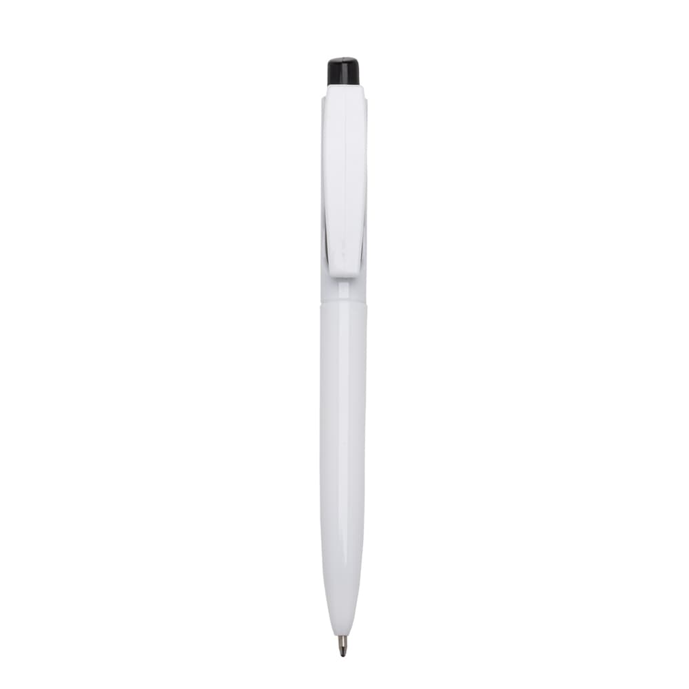Caneta plástica com carga esferográfica azul 1.0 mm e acionamento por clique.