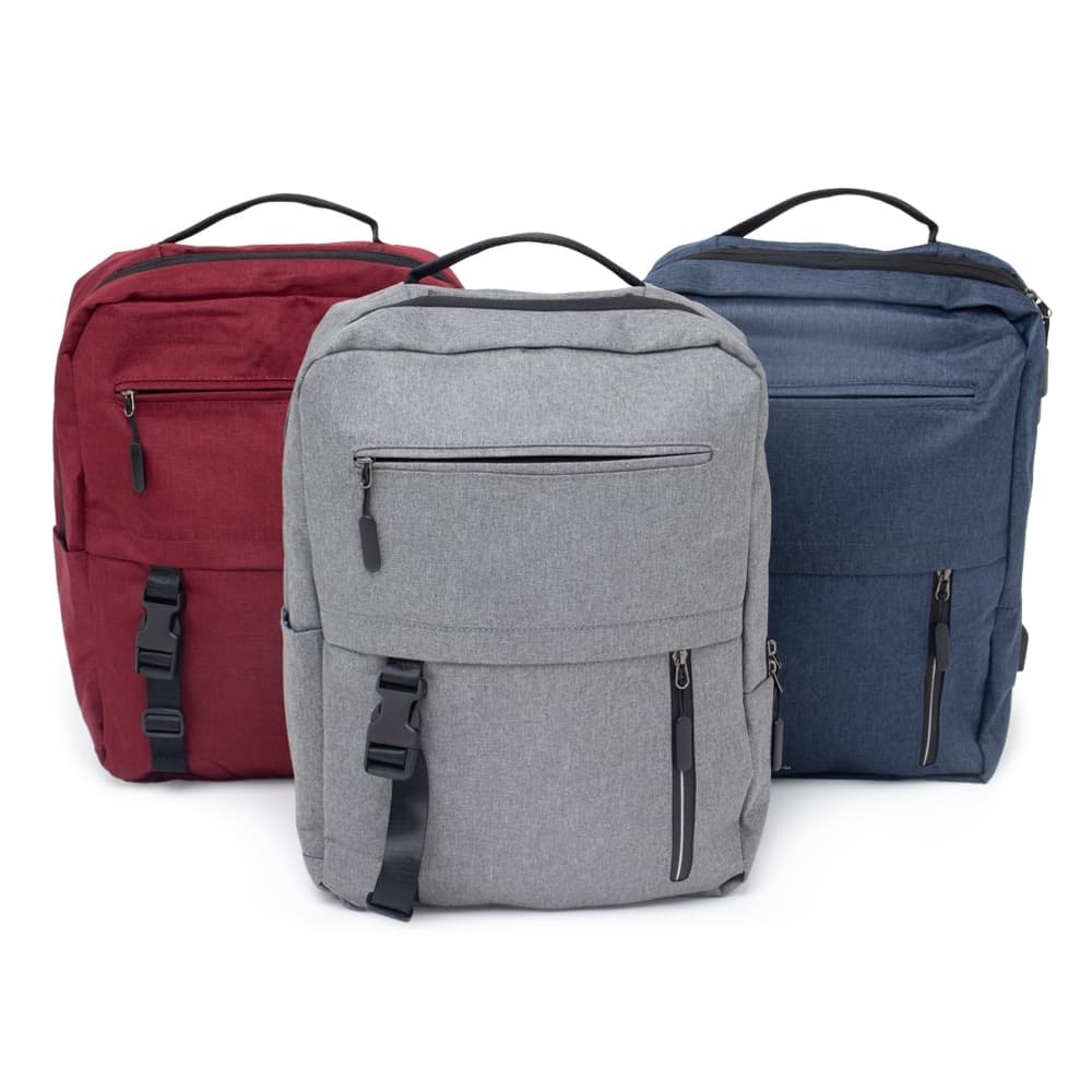 Mochila de nylon 23 Litros com 3 compartimentos, sendo o principal com bolso para notebook 15,6. Com divisórias internas para acessórios, a mochila possui bolso lateral, suporte externo USB e alça para encaixe em malas de viagens.