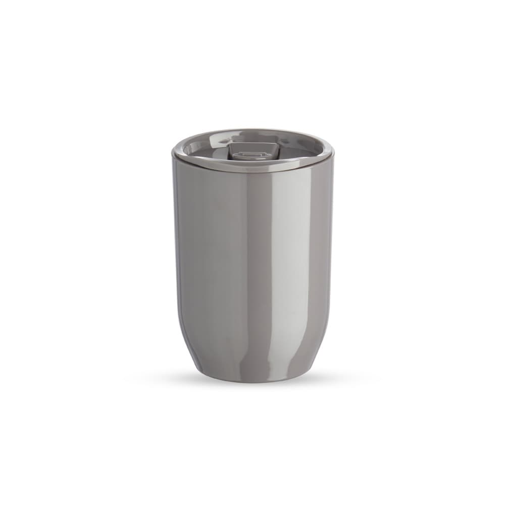Copo plástico 350ml com tampa de pressão. Tampa com acesso e trava de segurança para o bocal.