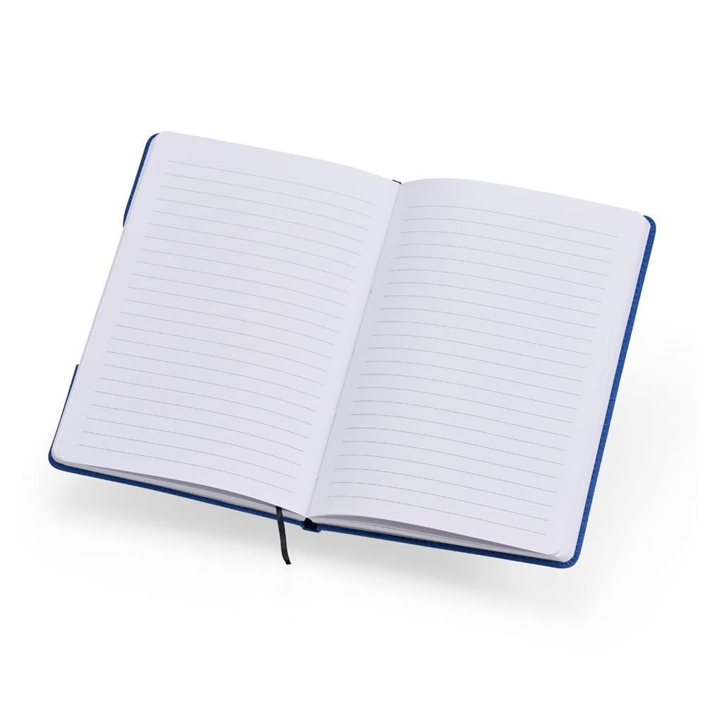A nossa caderneta traz funcionalidade e estilo em um design leve e prático. Feita em rPET, com cerca de 96 folhas brancas pautadas, é perfeita para anotações, e conta com um suporte na capa feito de papelão, com revestimento similar ao bambu, ideal para manter o aparelho celular firme. A capa dobrável e flexível facilita o transporte, e o marcador de página em cetim agrega um toque de sofisticação.