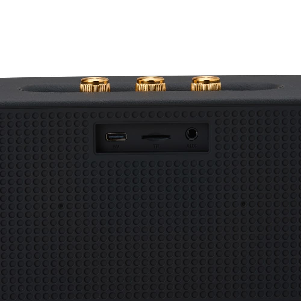 Design retrô e potência sonora! Caixa de som multimídia com tecnologia TWS. Feita em plástico resistente com classificação IPX4, esta caixa de som oferece conectividade bluetooth, rádio FM, suporte para cartão TF (MicroSD) e pen drive. Equipada com a tecnologia TWS para sincronização de duas caixas em uma, prepare-se para uma experiência sonora imersiva e potente. Com alça para transporte e pés antideslizantes, seu design versátil facilita o transporte e a transforma também em uma charmosa peça decorativa.