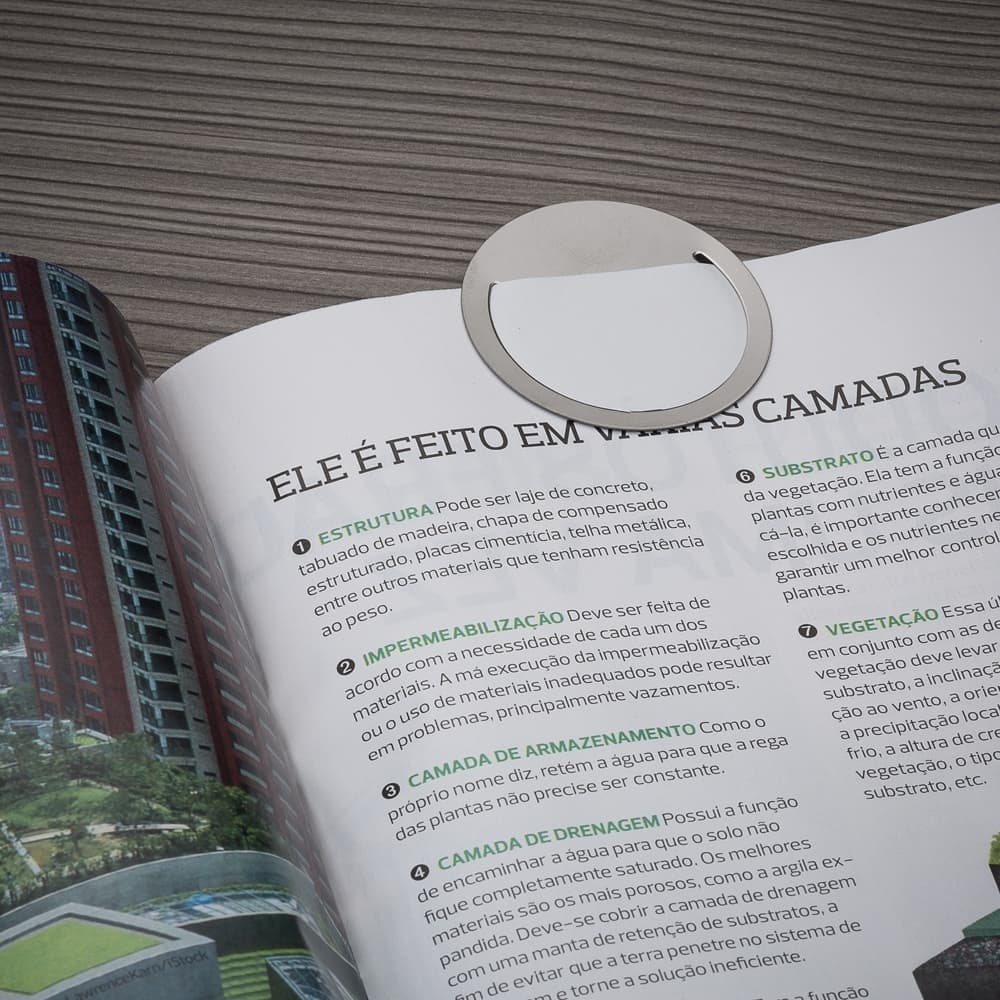 Marcador de página redondo em metal.