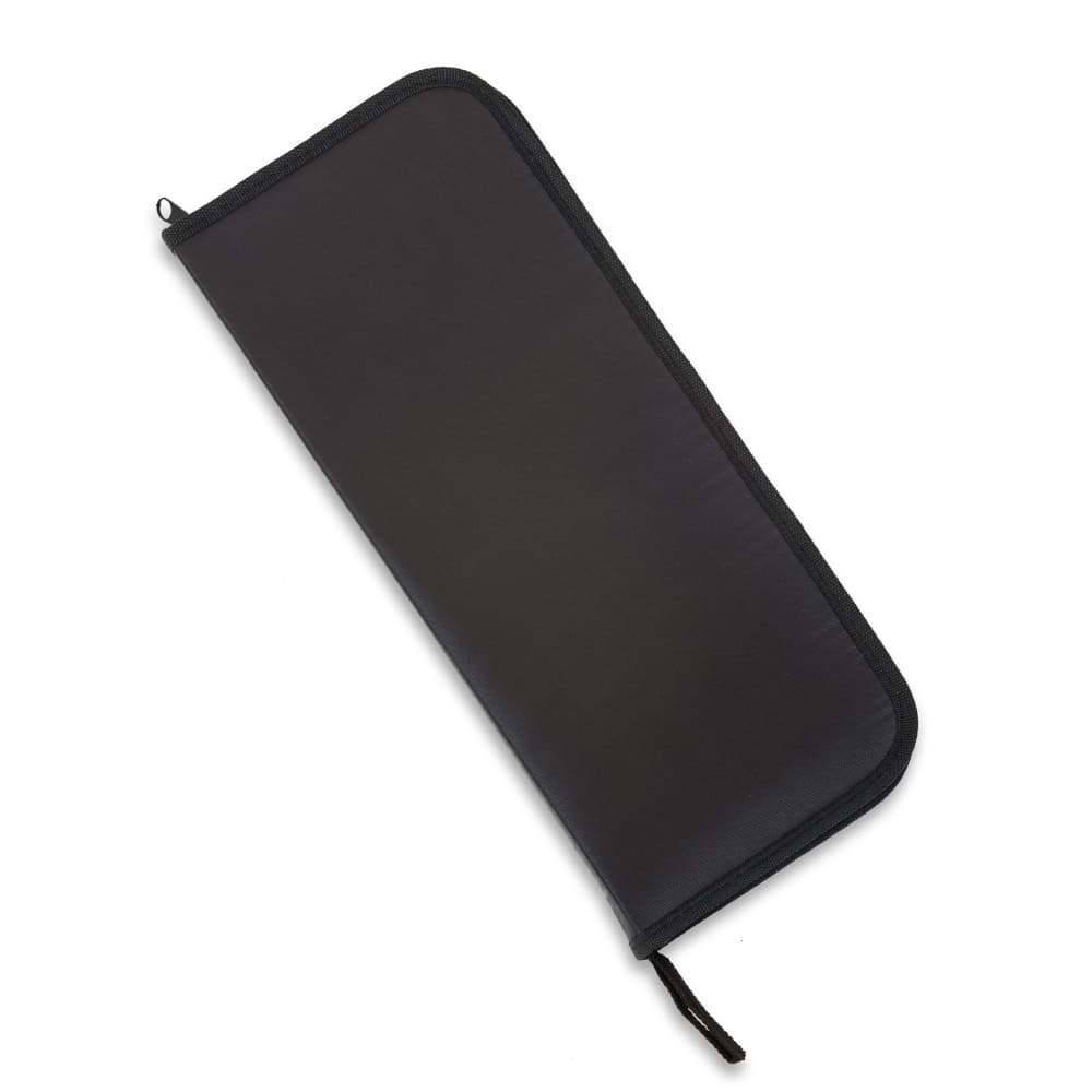 Kit churrasco 7 peças com estojo, contém: faca de chef, faca para desossar, faca de serra, faca de legumes, garfo, chaira e luva. Estojo com alça para transporte e área interna com elástico de fixação para os utensílios.