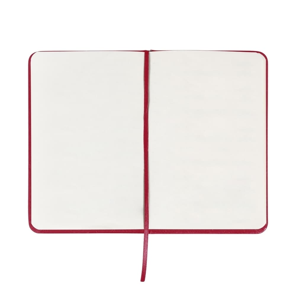 Caderneta de couro sintético com elástico para lacre e marcador de página em cetim, contém 80 folhas sem pauta.