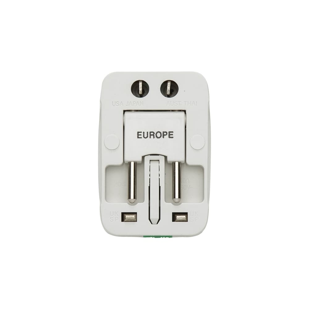 Adaptador universal branco em plástico resistente.Possui plug EUROPE: para uso basta puxar a tomada cental, para guardar empurrar para dentro. Plug UK/SP: empurre o botão verde de lock para unlock e a tomada irá pra fora, para guardar basta empurrar a tomada de volta para dentro e empurre o botão para lock(neste processo é necessário segurar a tomada enquanto trava). Plug USA/JAPAN/AUST/THAI: empurre o botão verde de lock para unlock e a tomada irá pra fora, para guardar basta empurrar a tomada de volta para dentro e empurre o botão para lock(neste processo é necessário segurar a tomada enquanto trava). Parte central basta conectar algum dispositivo e utilizar as outras tomadas para conectar à energia. Quando o adaptador estiver com a luz vermelha acesa significa que está funcionando.