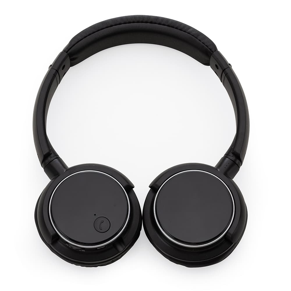 Fone de ouvido Bluetooth com haste ajustável e fones giratórios, “tiara” e protetor de ouvido em couro sintético revestido de espuma. Possui indicador led, botão liga/desliga, entrada para cartão microSD, entrada auxiliar/P2, entrada micro USB e botão play/volume. Acompanha cabo USB e manual de instruções.