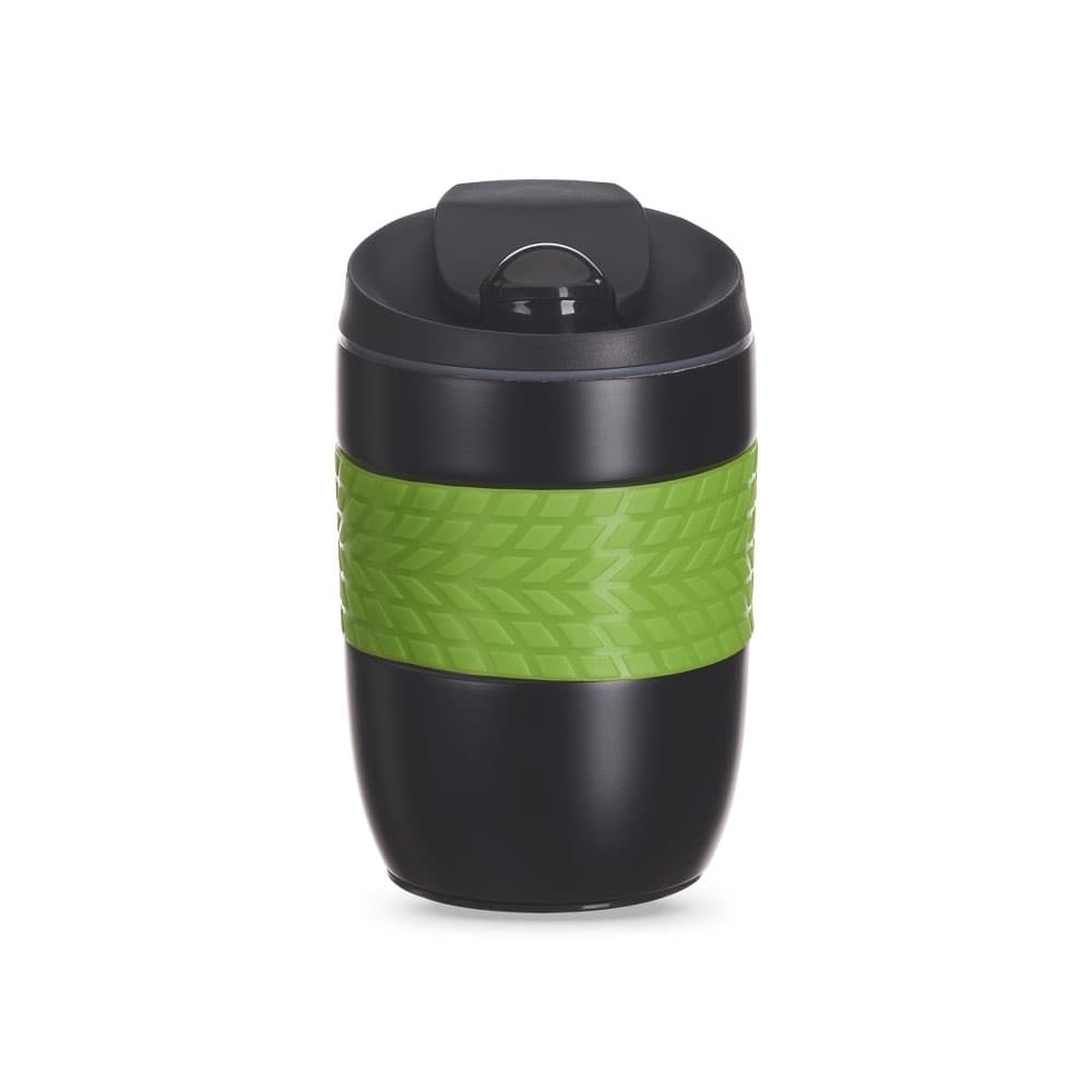 Copo antiqueda 250ml produzido em inox com parede dupla e luva de silicone, possui tampa plástica rosqueável com proteção para o bocal e parte inferior com ventosa para fixação. Obs.: Conserva temperatura.