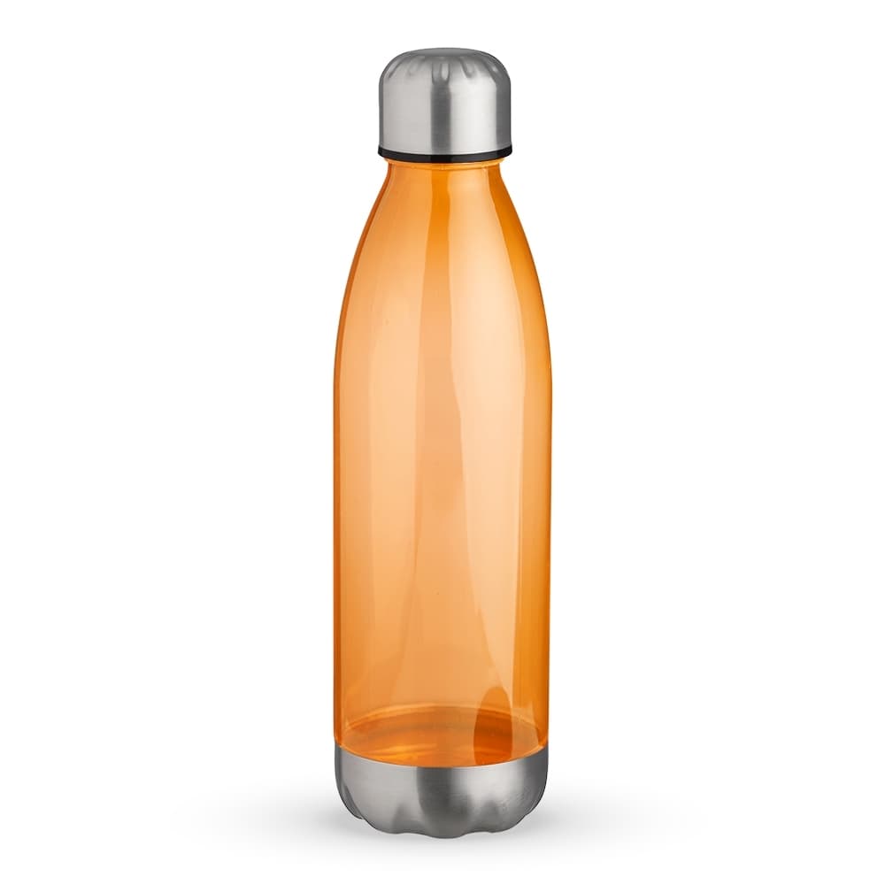 Garrafa plástica 700ml translúcida, possui tampa e base em alumínio.