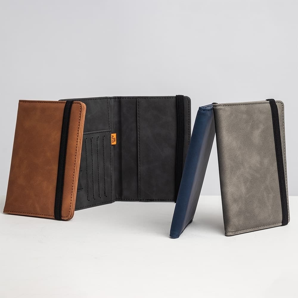 Nosso kit viagem 3 peças é um mimo essencial para viajantes. O conjunto, com acabamento em cortiça, inclui um porta-passaporte e uma tag identificadora de bagagens com alça, oferecendo maior segurança e reduzindo o risco de extravio de bagagem por falta de identificação. O kit é acondicionado em um estojo de papel com berço espumado e revestido em veludo.