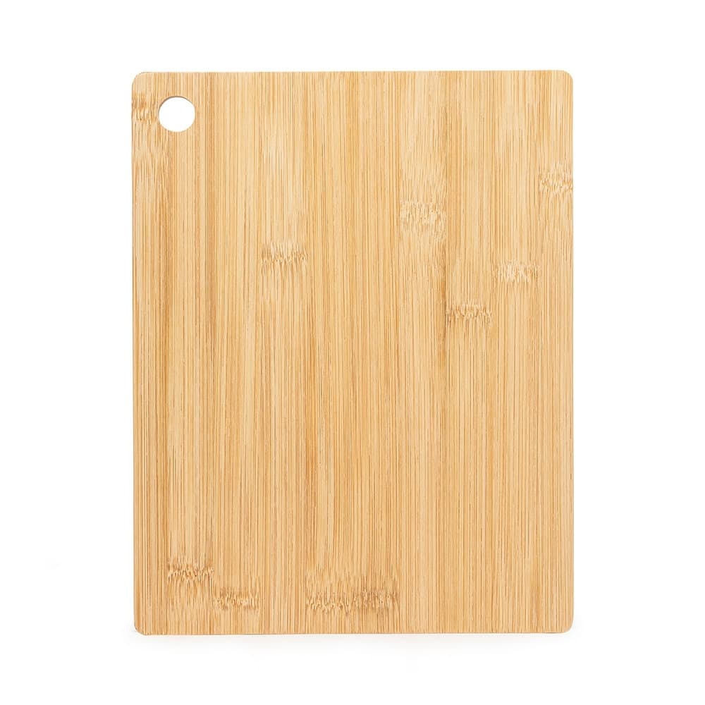 Tábua de corte de bambu com canaleta e acesso para gancho.