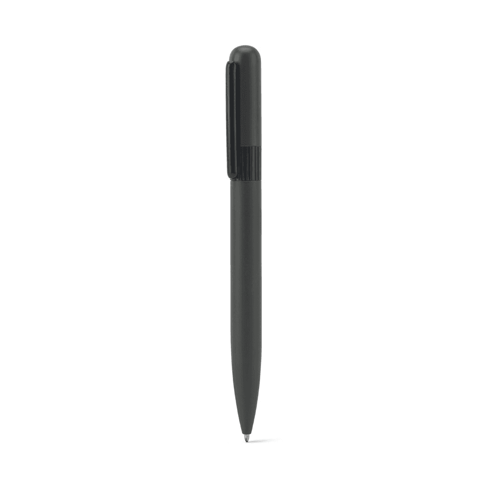 Modelo: 51974 DANTAS. Esferográfica em metal 60% reciclado com design arredondado e escrita em preto