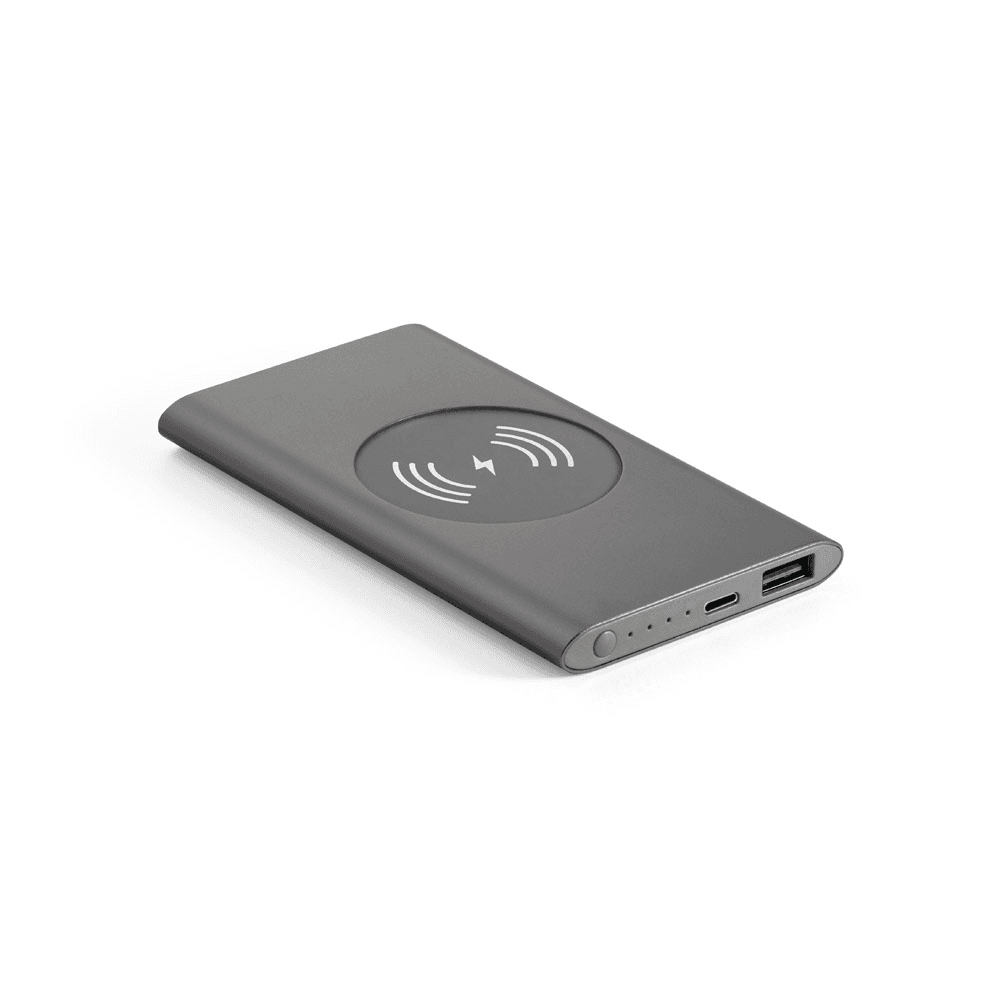 Modelo: 57078 CASSINI 4.0. Bateria portátil com carregador wireless em alumínio 100% reciclado e capacidade de 4.000 mAh