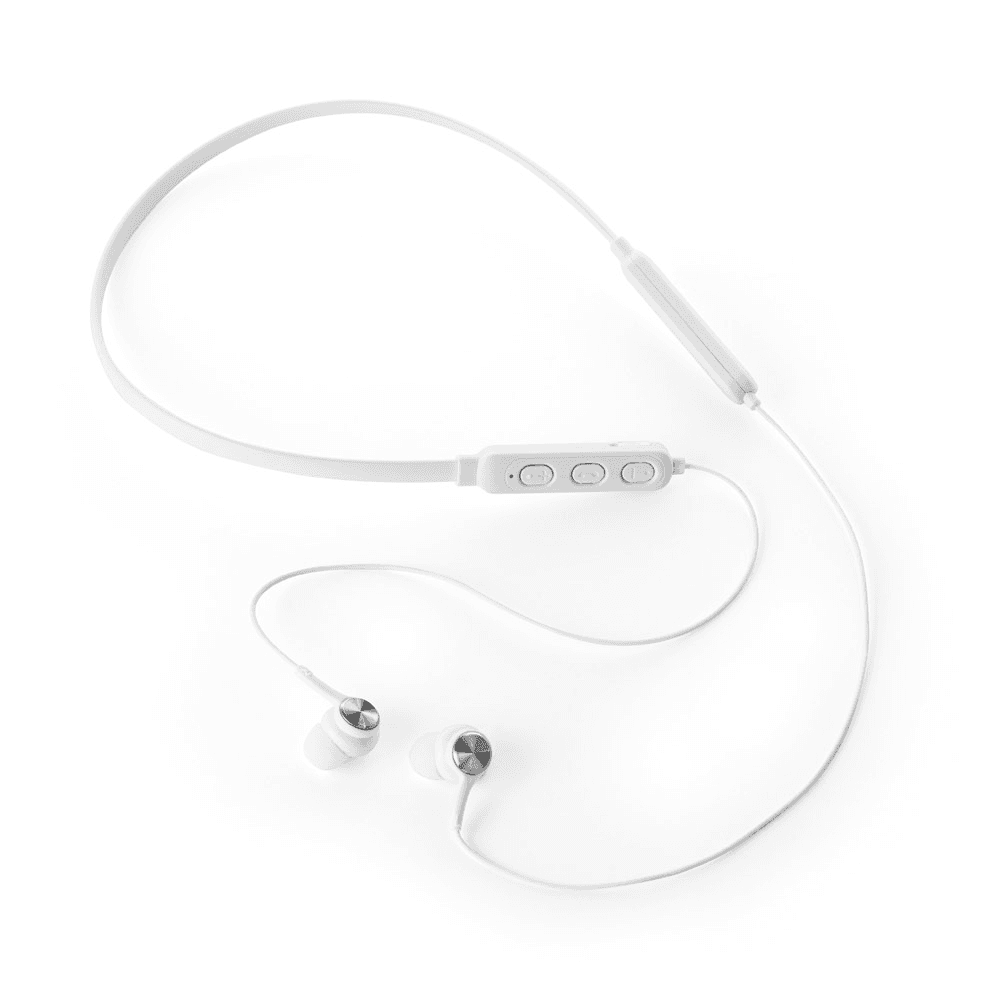 Fone de ouvido em PC. Transmissão sem fios BT v5.0 com banda para pescoço com autonomia aproximada de 7 horas. Função para atender chamadas, controle de volume e conexão à playlist do dispositivo móvel. Incluso cabo USB / micro USB para carregar. Fornecido em bolsa em non-woven. 190 x 200 mm