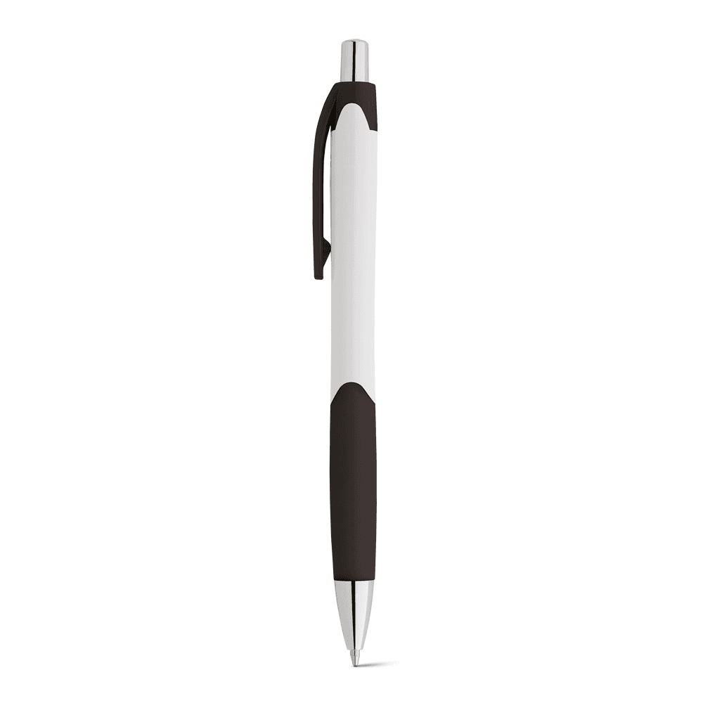 81104 CARIBE WHITE. Esferográfica em ABS com grip e acabamento brilhante