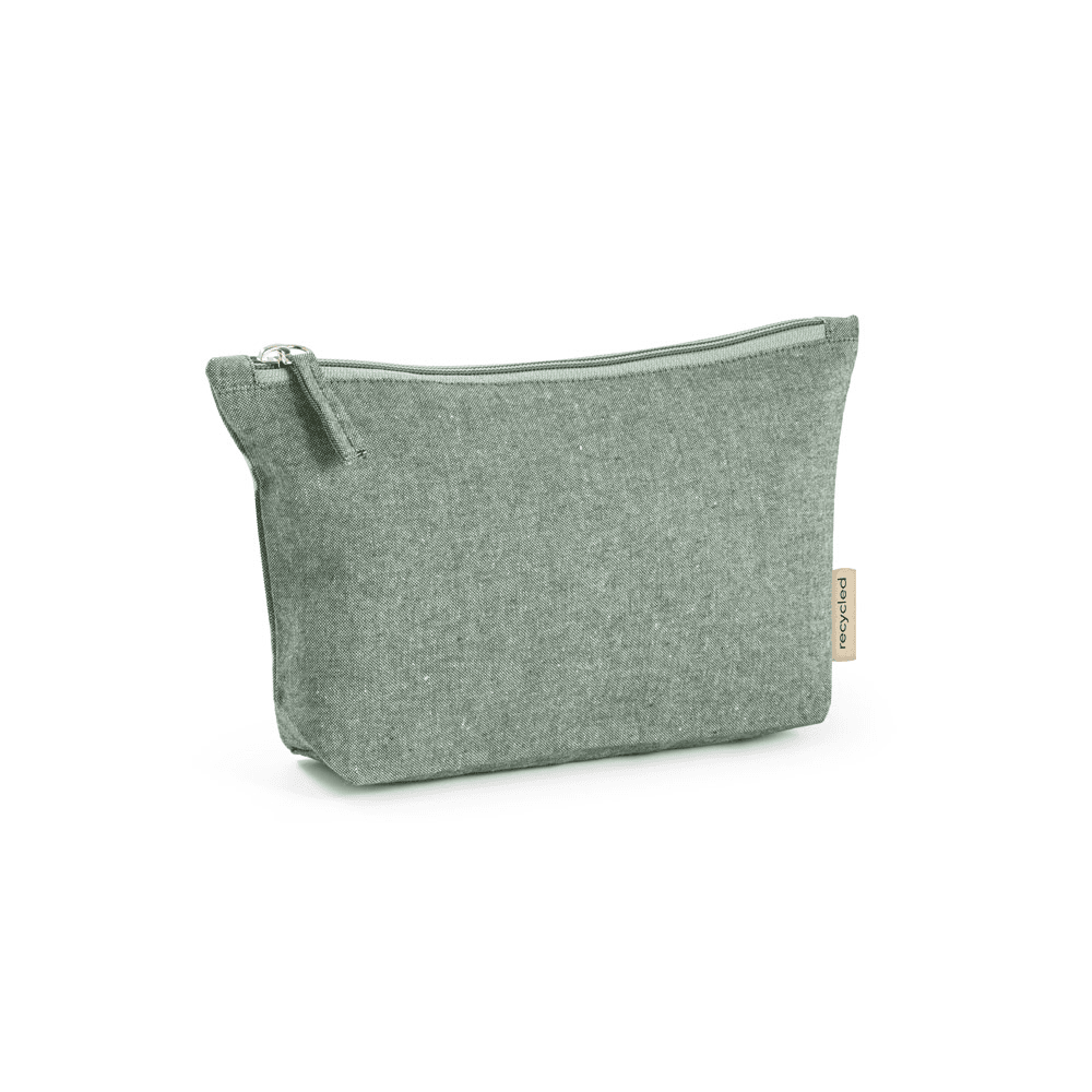 Bolsa multifunções em 70% algodão reciclado e 30% poliéster reciclado (140 g/m²). Interior com forro 100% algodão. 250 x 140 x 60 mm