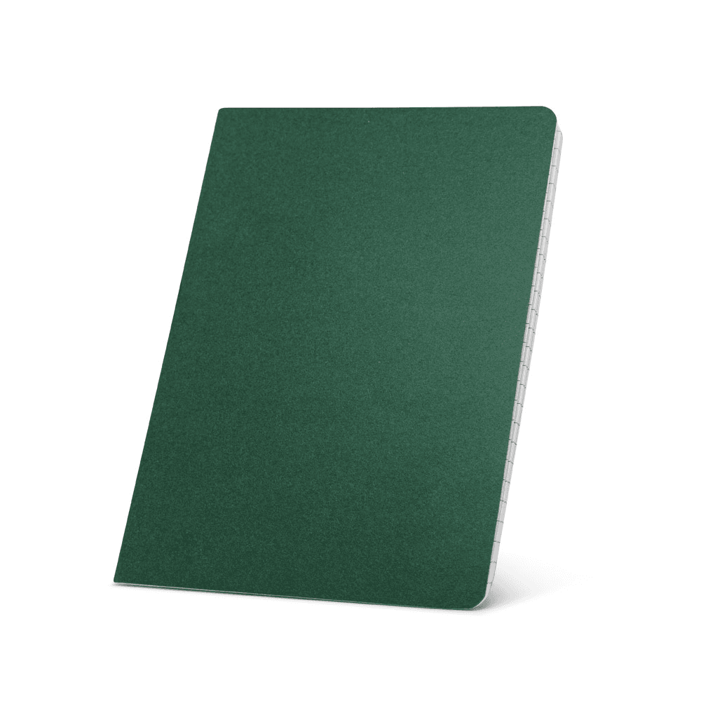 Caderno A5 de capa flexível em cartão kraft 100% reciclado, com 80 páginas pautadas em papel 100% reciclado. 140 x 210 mm