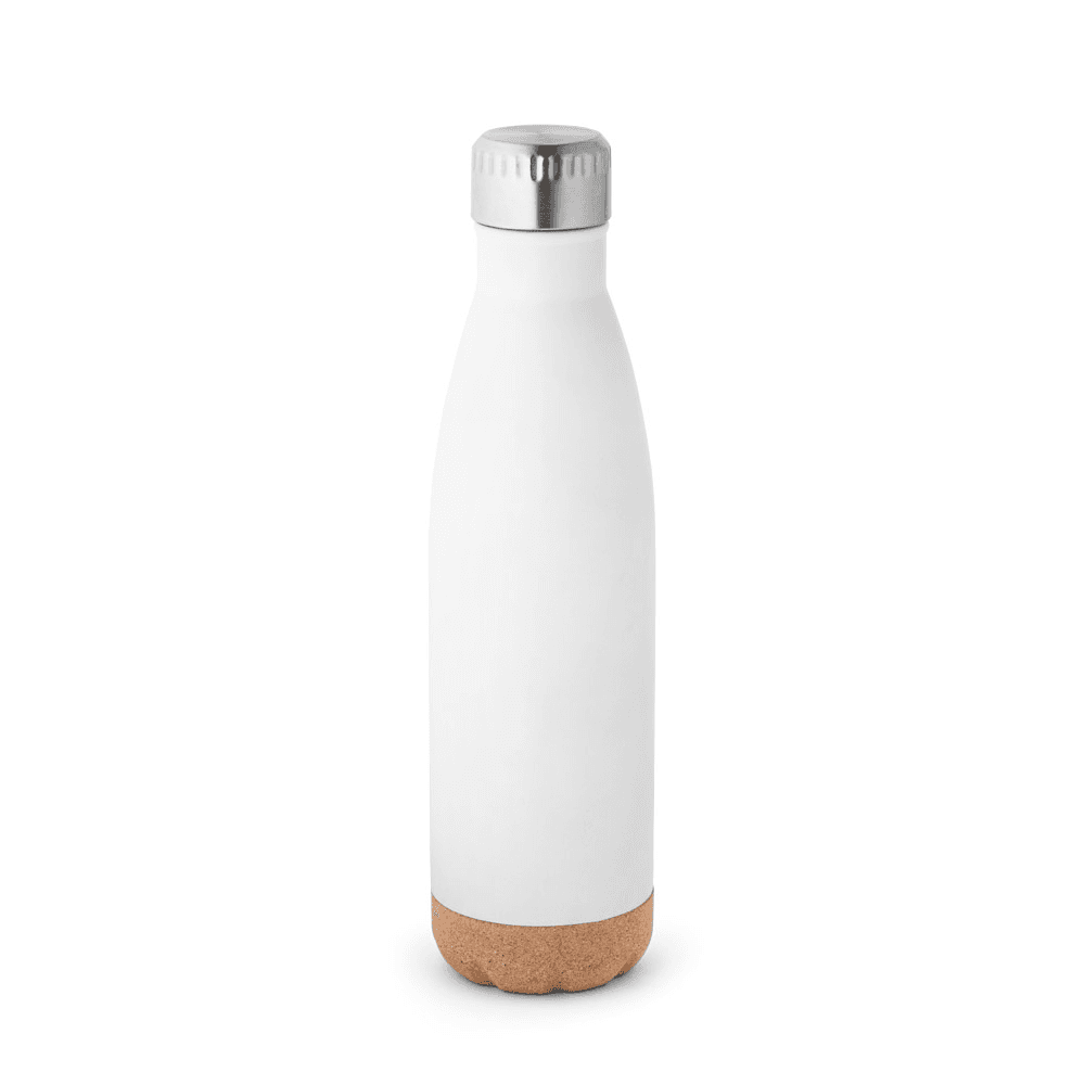 Garrafa em aço inox de parede dupla térmica, isolada a vácuo, com tampa em aço inox e base em cortiça. Capacidade até 560 mL. Mantém as bebidas quentes por 8h e frias por 24h. Fornecido em caixa presente de papel kraft reciclado. Certificação EU Food Grade. A cor e o resultado da impressão nos materiais naturais pode variar entre produtos. ø71 x 258 mm