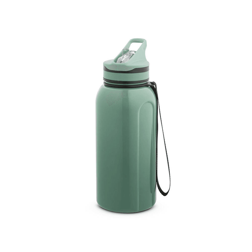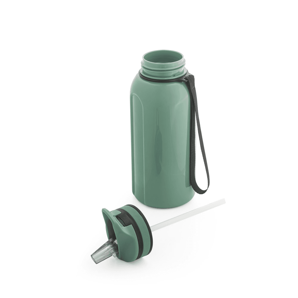 Squeeze esportiva em PETG, tampa com bico de canudo flip e canudo flexível no interior, com pega para facilitar o transporte. Grande capacidade até 1230 mL. Certificação EU Food Grade. Ø95 x 252 mm