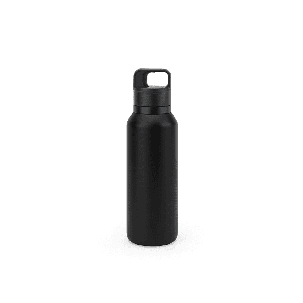 Garrafa em aço inox 91% reciclado com parede dupla isolada a vácuo e parede interna revestida a cobre, características que permitem conservar a temperatura das suas bebidas por um longo período. A tampa em PP é à prova de vazamentos e incorpora um botão que facilita a sua abertura. O acabamento da garrafa em mate confere-lhe um visual mais contemporâneo. Capacidade até 590 mL. Fornecido em caixa presente de papel kraft reciclado. Certificação EU Food Grade. ø78 x 248 mm