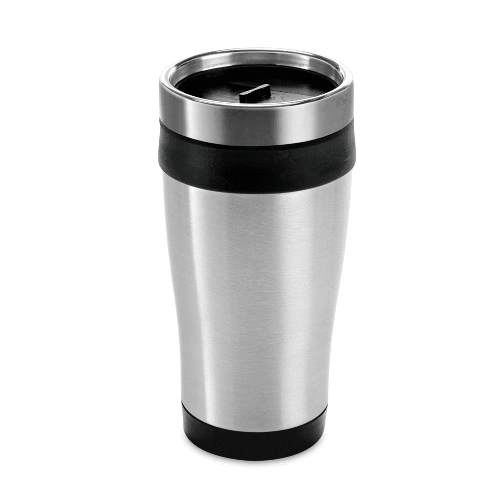 Copo de viagem em aço inox e PP, térmico com parede dupla isolada a ar. A tampa possui sistema de abertura e fecho fácil. Capacidade até 420 mL. Preserva as bebidas quentes por 2h e frias por 4h. Fornecido em caixa presente. Certificação EU Food Grade. ø81 x 187 mm