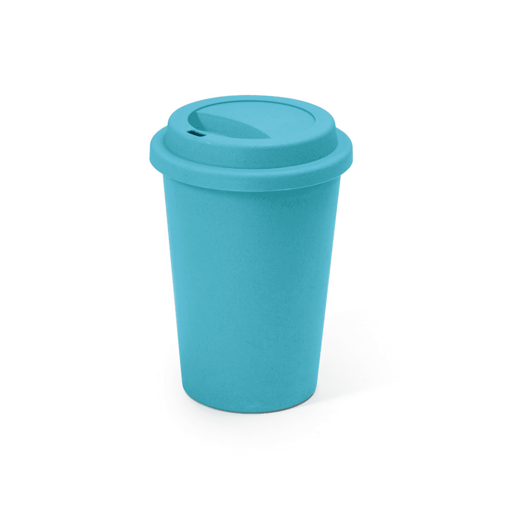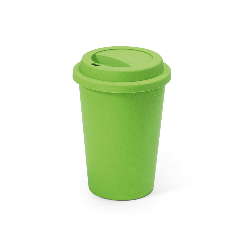 Copo de viagem em fibra de bambu (60%) e PP (40%) com tampa e capacidade até 450 mL. Certificação EU Food Grade. ø93 x 134 mm