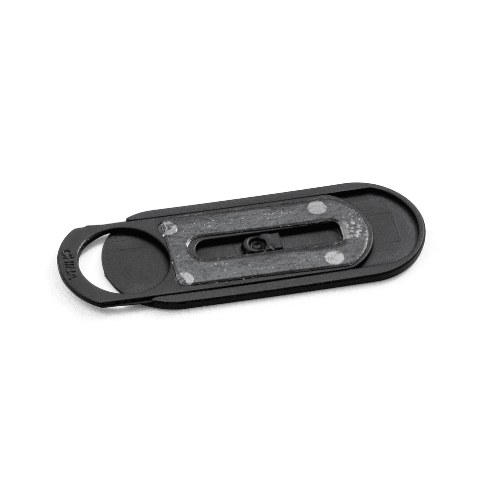 Protetor para webcam em ABS com tampa deslizante e autocolante no verso. Formato universal para smartphone, tablet, notebook e computador de secretária. 32 x 13 x 1,5 mm | Aberto: 43 x 13 x 1,5 mm