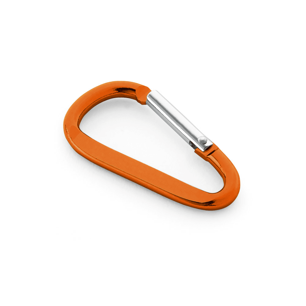 Mosquetão em alumínio com área plana para gravação. 24 x 48 x 4 mm