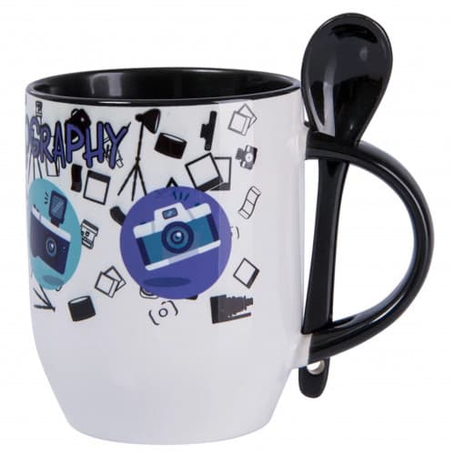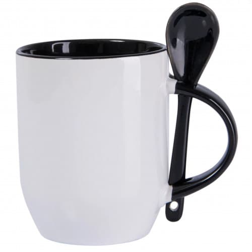 Caneca De Cerâmica Com Colher e Interior Preto 325ml