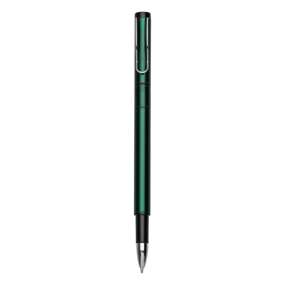 Caneta metálica com marca texto e carga esferográfica azul, ambas com tampas protetoras.
