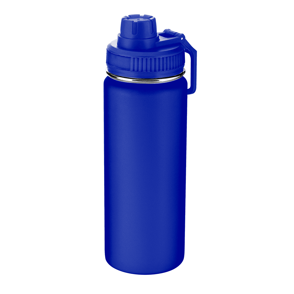 Garrafa térmica em aço inox com parede dupla isolada a vácuo e com capacidade de 570 ml. Tampa rosqueável com anel de silicone, alça plástica em formato de mosquetão e bico rosqueável para fácil acesso. Design com frisos na tampa e pintura a pó.
