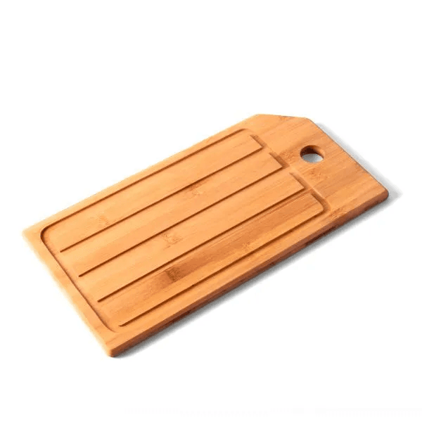 Conjunto para Cozinha/Pão em Bambu/Aço Inox; Acompanha tábua e colher 30cm em Bambu; Faca 7", faca 7" para pão, faca 3" para legumes em Aço Inox/Bambu. Acomodados em uma linda caixa para presente. Tábua confeccionada com tripla camada invertida, para dar maior durabilidade.