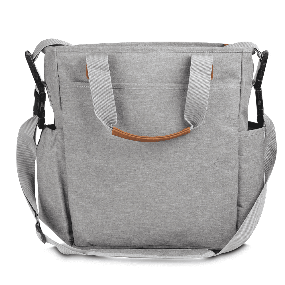 Bolsa multifuncional em poliéster 300D com detalhes em PU e interior em 210D. Possui 2 compartimentos laterais, 3 bolsos frontais com zíper, 1 na parte oposta com fechamento em velcro, incluindo um específico para lenços umedecidos. Conta com alças de ombro e de mão com acabamento em PU, além de interior espaçoso com divisórias e fechamento em zíper. Prática e organizada para o dia a dia.