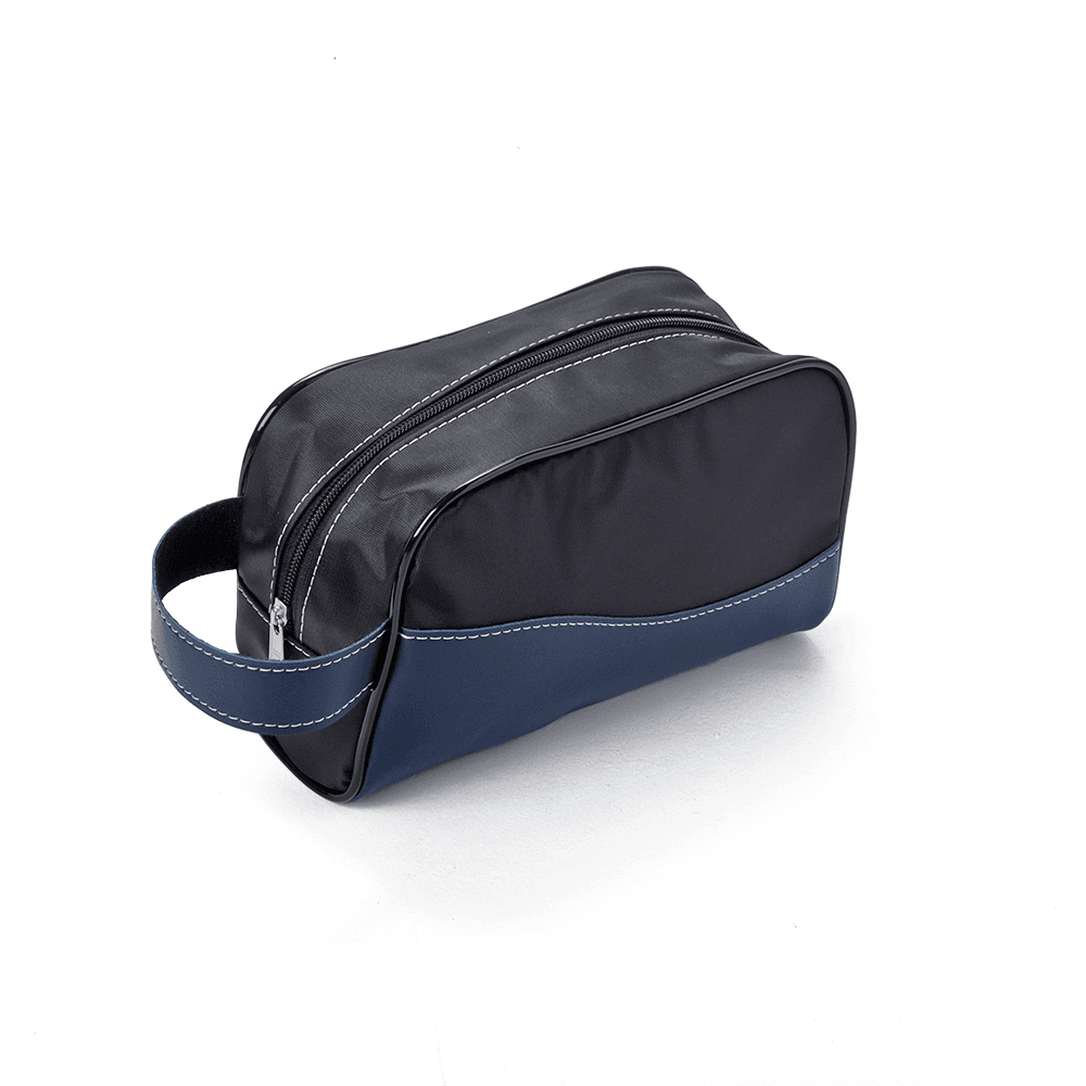 Nécessaire em PU no tecido externo e forro sintético Bidim, e alça lateral, Gravação frontal na opções: serigrafia e plaquinha.