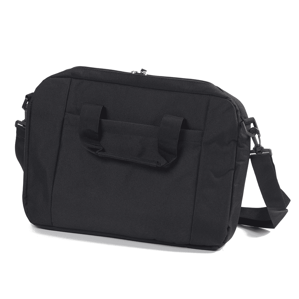 Pasta para notebook tecido poliester, bolso lateral, porta notebook com capacidade de até 15,6", toda forrada, alça de mão e ombro.