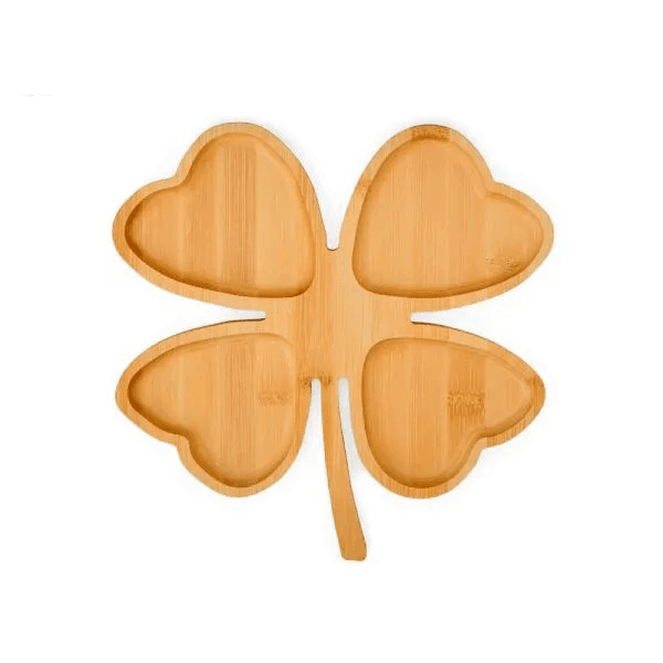 Conta com petisqueira formato de trevo em bambu; Espaço para garrafa com palha (NÃO ACOMPANHA GARRAFA). Estão perfeitamente acomodados em uma caixa para presentear.