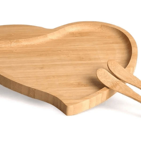 Petisqueira Em Bambu Com Formato De Coração Com Espátulas PD-04X13