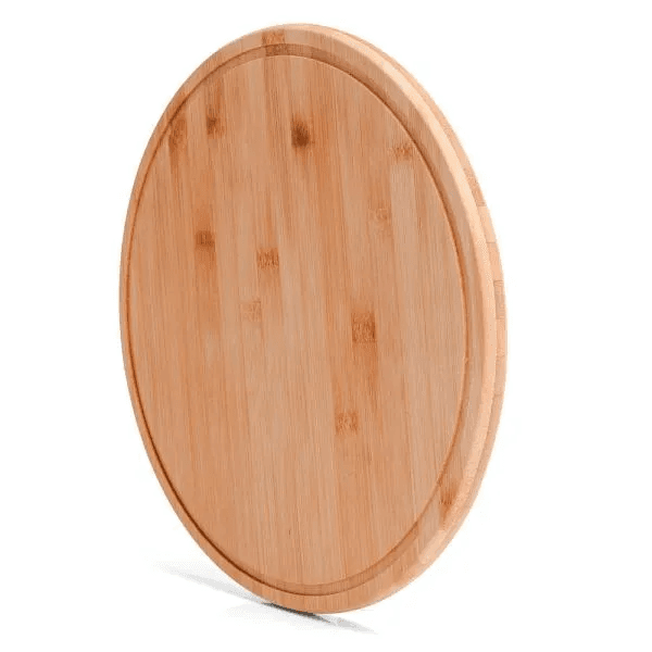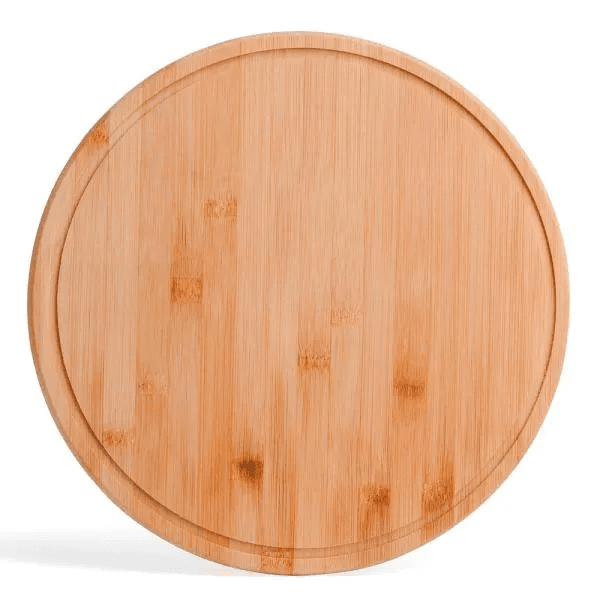 Tábua para Pizza em Bambu; Conta com sulco ao redor da tábua. Confeccionada com tripla camada invertida, para dar maior durabilidade e não deformar com o passar do tempo.