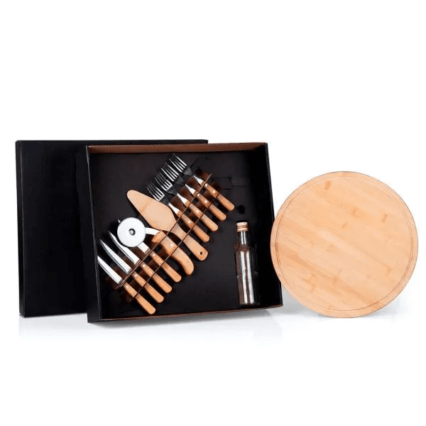 Kit Para Pizza Em Bambu Com Acessórios - 8 Pçs KT-00443
