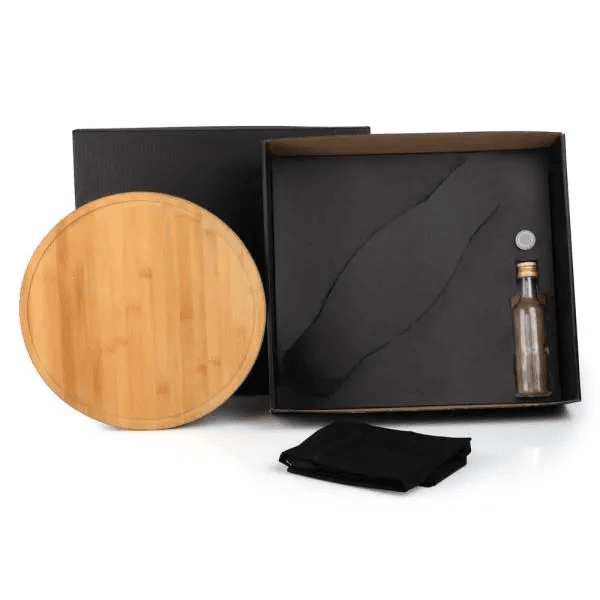 Kit Para Pizza Com Garrafa - Bambu / Inox / Vidro - 4 Pçs KT-90169