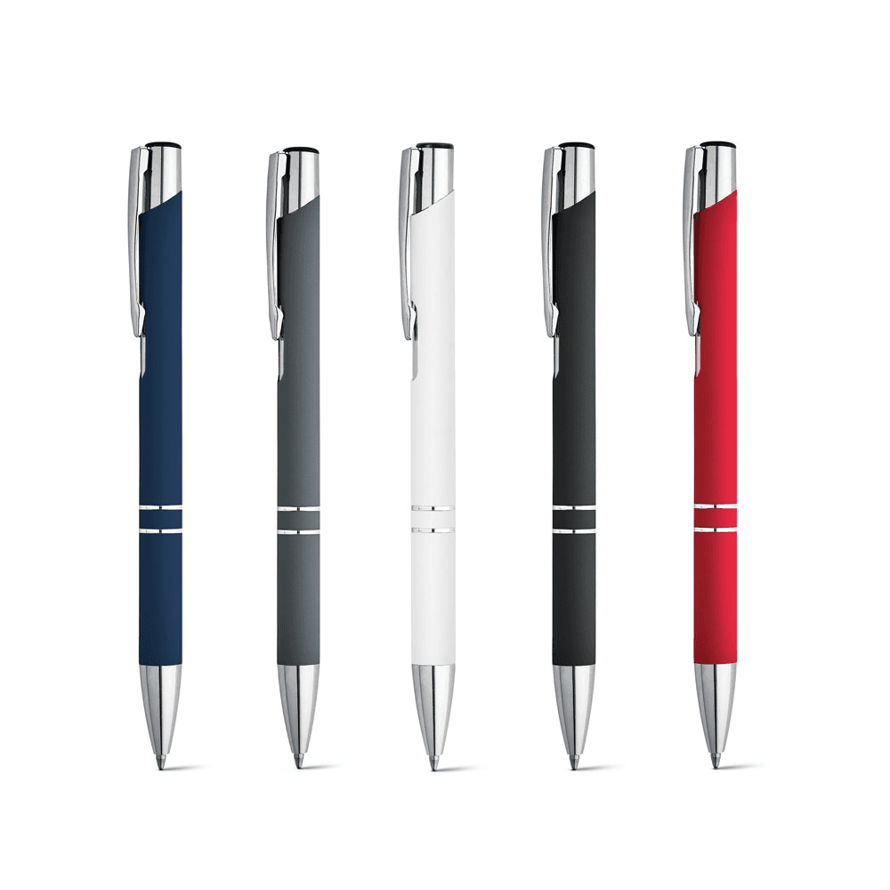 81141 BETA SOFT. Esferográfica em alumínio com acabamento emborrachado e escrita em preto