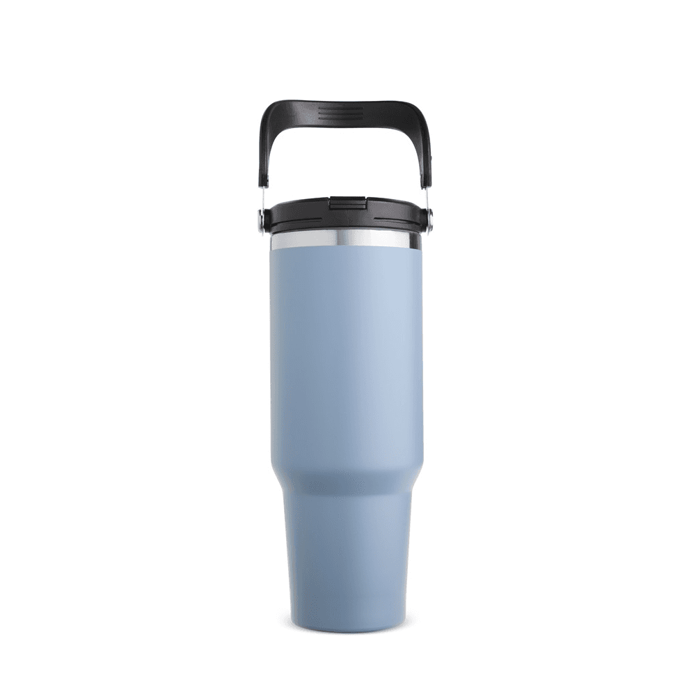 Copo térmico em inox com capacidade de até 1,25 litro. Possui estrutura de parede dupla e tampa plástica rosqueável com vedação a vácuo, o que permite conservar a temperatura de líquidos por mais tempo. Conta ainda com alça para transporte em inox com revestimento em plástico e canudo plástico removível.