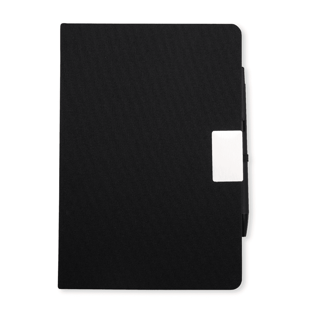 Agenda diária 2026 com capa em linho com detalhe em metal, marca-páginas feito em cetim, porta-canetas lateral e fechamento em elástico. Possui páginas para planejamento mensal, calendários de 2026 a 2028, além de listas de conversão de pesos e medidas, contatos e códigos DDI.