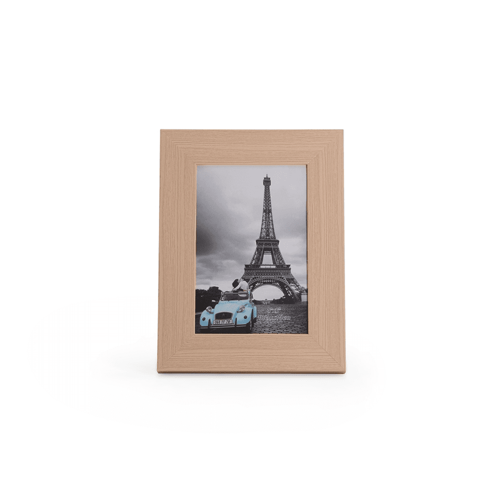 Porta-retrato para fotos 10 x 15, ideal para mesas e superfícies planas. Possui moldura em PVC, visor em acetato, fundo em MDF e travas metálicas.