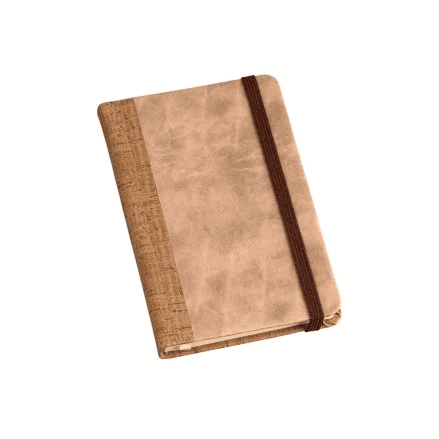 Caderneta Pequena tipo MOLESKINE capa com Recorte Cortiça | Marrom Claro com Elástico Marrom SEM PAUTA LG3707