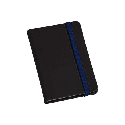 Modelo: Caderneta Pequena tipo MOLESKINE capa PRETA com COSTURA e ELÁSTICO COM PAUTA LG3699