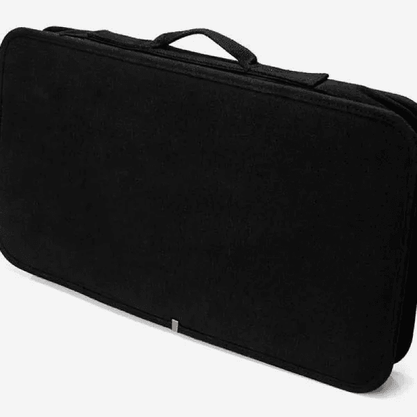 Kit para Churrasco e Caipirinha. Composto por estojo em tecido preto com alça de mão e avental; tábua para Churrasco, tábua para Caipirinha, pegador e socador em Bambu; faca 7'', faca para churrasco, pegador para Churrasco, espátula para Churrasco e garfo para Churrasco em Bambu/Inox. Acompanha também faca 4" para frutas, faca 5" para desossar e garfo trinchante em Madeira/Inox.