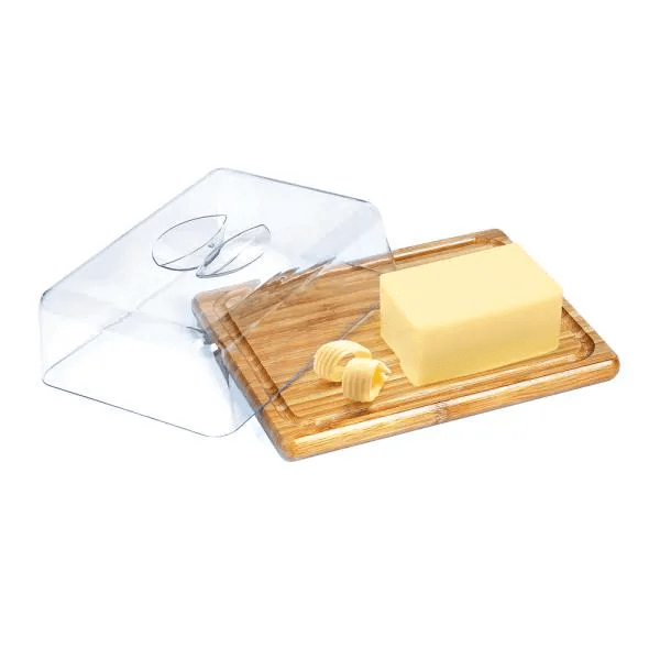 Porta Frios/Manteiga em Bambu/Poliestireno. Acompanha tampa em Poliestireno.