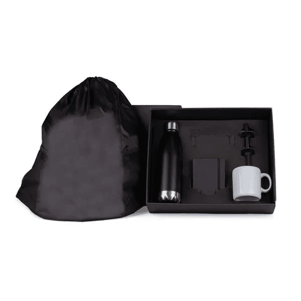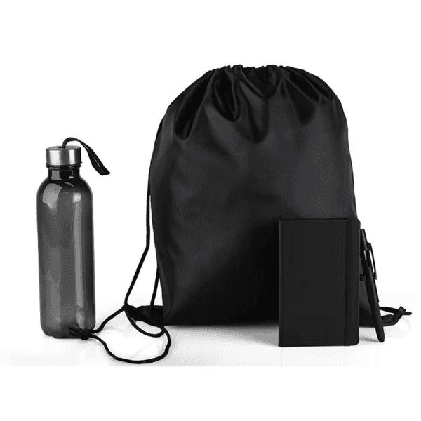 Kit Garrafa, Caderno E Caneta - Preto - 3 Pçs KT-90358
