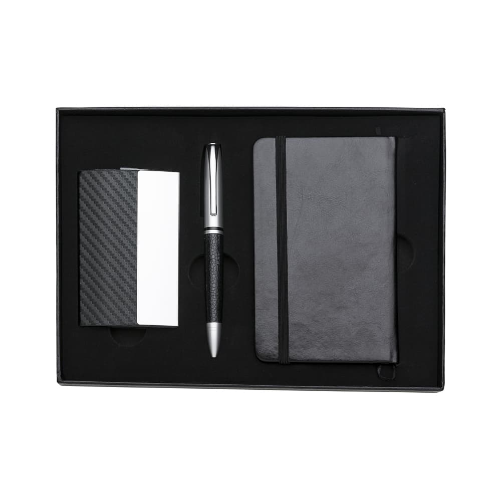 95099 GOSLING. Conjunto composto por um porta-cartões e chaveiro, ambos em metal e cortiça