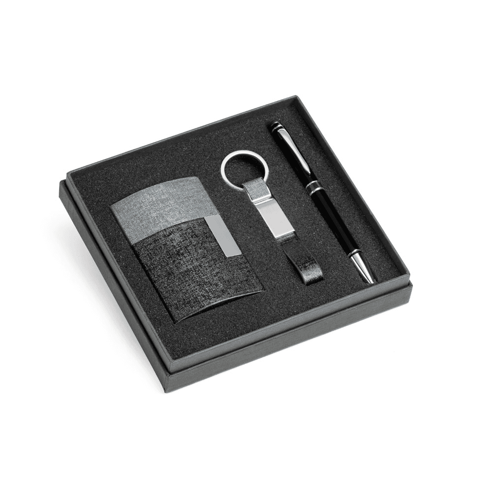 93315 BRENDON. Kit de porta cartões, chaveiro e esferográfica em c.sintético, metal e alumínio
